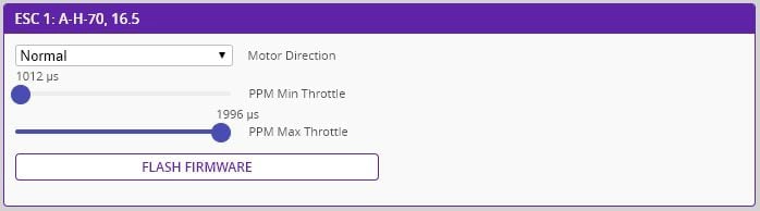6. As shown in the diagram above, ESC’s 1 and 4 should be configured to spin CW (Normal) and ESC’s 2 and 3 should spin CCW (Reversed). If any of your motors need to be changed, click the motor direction dropdown menu to make changes.