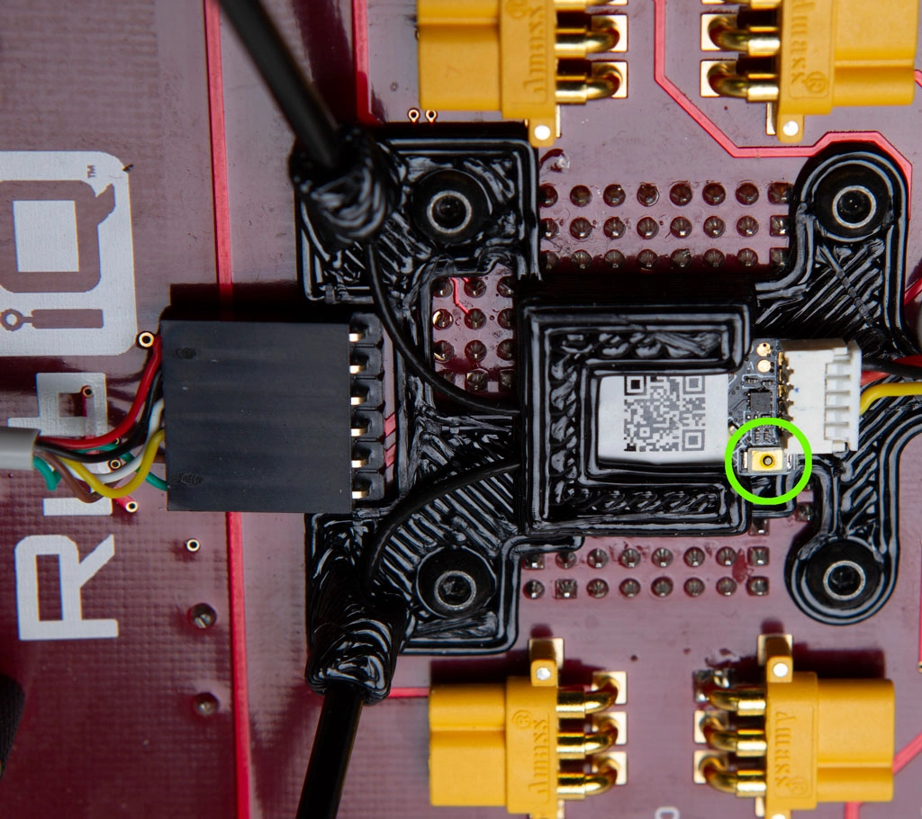 - Use the thin black tubing or some other non-conducting item to gently press and hold the small gold or silver binding button on RubiQ’s receiver, which can be found below the battery plate on the top of the PCB. It requires very little force to press and hold the binding button. Excessive force could break the button.